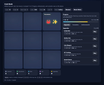 | Tags | 2D, AI Generated, Clicker, crab, Cute, Indie, Singleplayer |